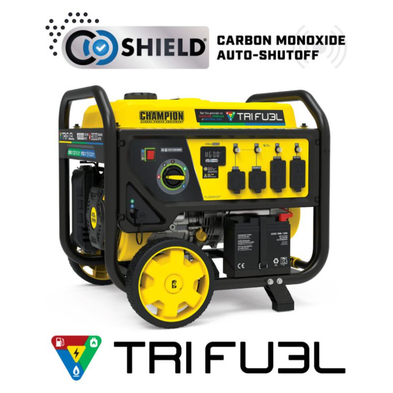 ژنراتور سه گانه سوز 10 کیلووات Champion را می توان به عنوان یکی از برترین موتور برق جهان نامبرد. موتور برق چمپیون یک برند آمریکایی است و این موتور برق گازسوز دارای فناوری خاموش کننده خودکار مونوکسید کربن CO Shield® است. همچنین با فناوری Tri-Fuel یا سه گانه سوز/ دوگانه سوز کار می کند و بر اساس این فناوری تجهیز می تواند بصورت موتور برق گازسوز ،موتور برق بنزینی یا موتور برق گاز کپسول( پروپان) کار کند. این موتور برق آمریکایی الزامات ANSI/PGMA G300-2018 را برآورده می کند و به عنوان بهترین موتور برق جهان در حوزه موتور برق های گازسوز و موتور برق های دوگانه سوز یا Dual fuel نیز شناخته می شود